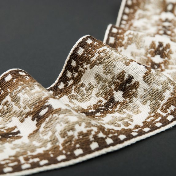 Inspired by an exclusive design from the Travers archives, the TAPEsTry BordEr was discovered in a small antique Belgian ribbon shop. This multi- coloured 2.4″ border is woven in a jacquard construction, which creates texture and dimension. The ombre of colours creates the rich combinations, which enhance linens, prints and wovens.